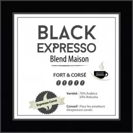 Le blend de cafés en grains Black Expresso est composé d’un mélange d’Arabica et de Robusta.